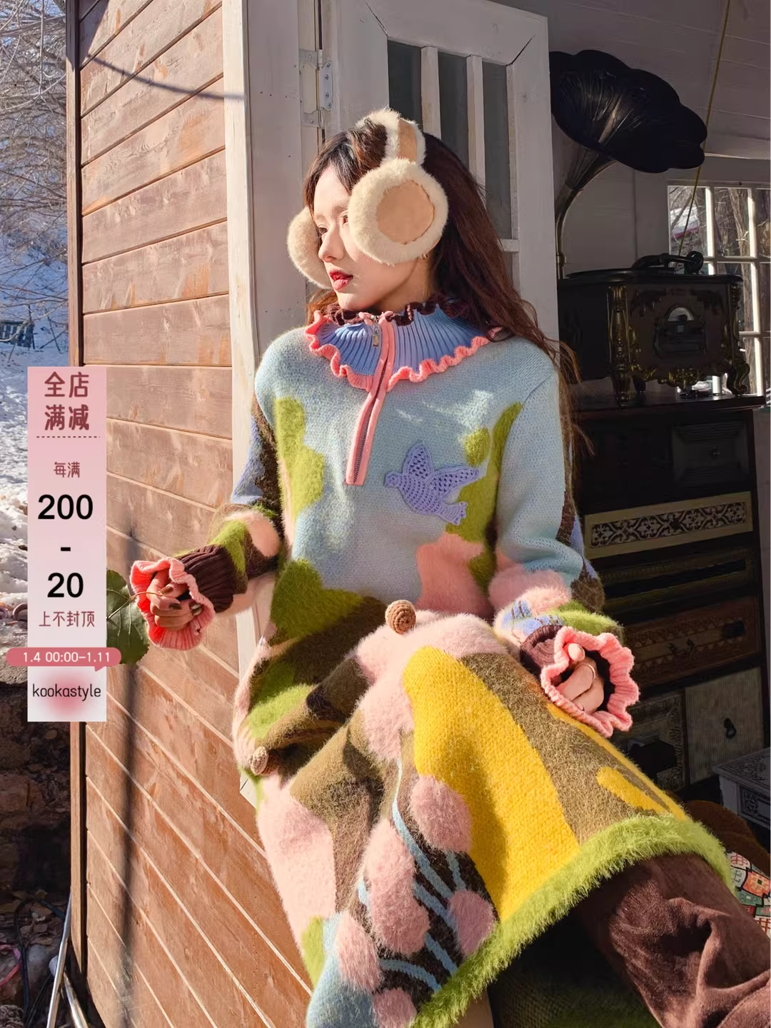 Half-Zip High-Neck Jacquard Knit Dress X3500