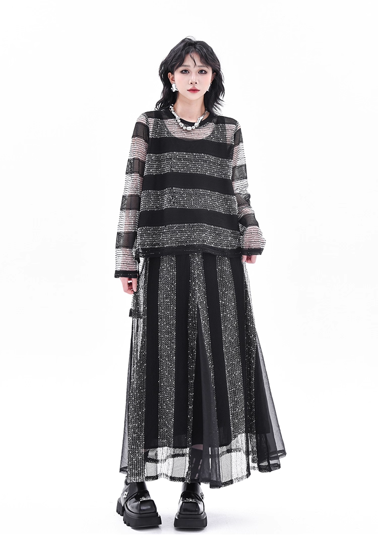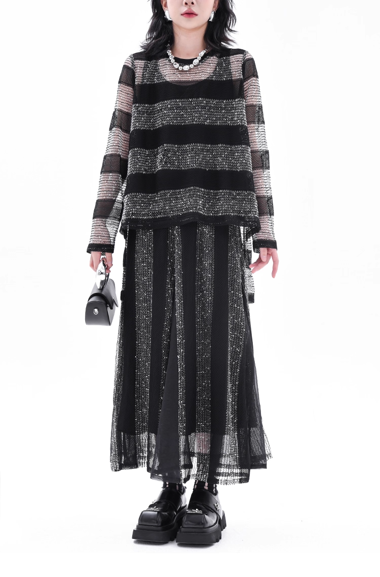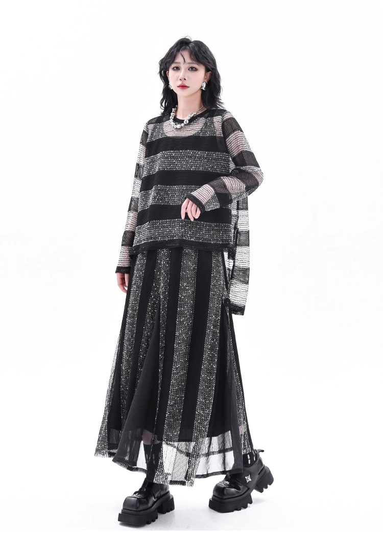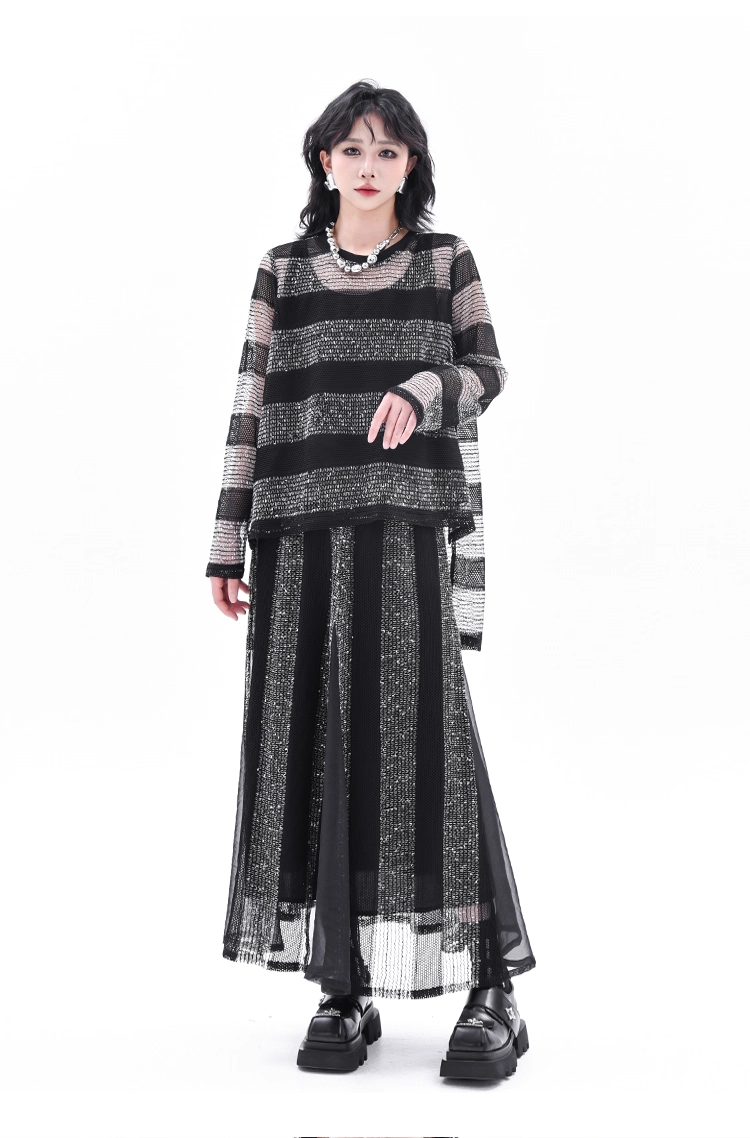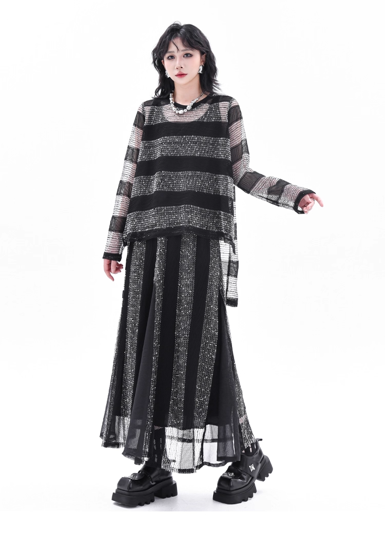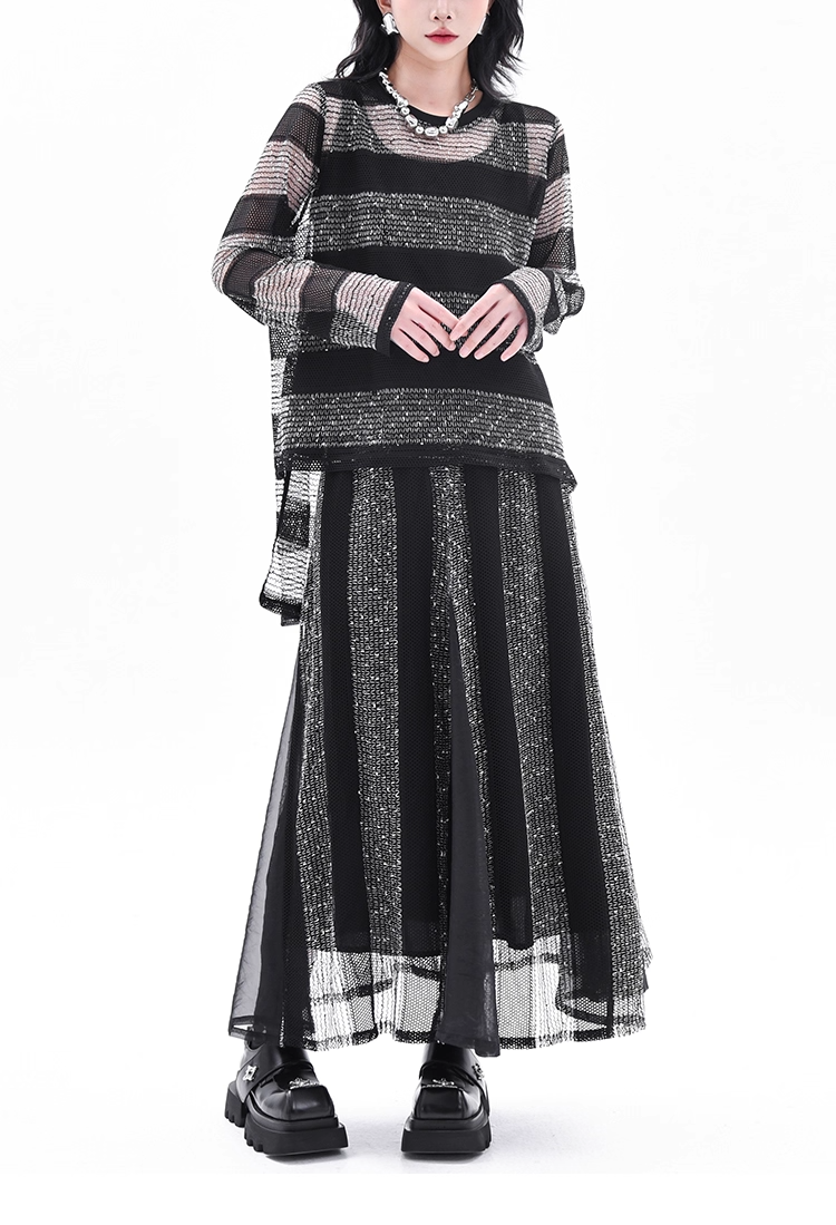 Asymmetrical Long Sleeve Top & Elastic Waist Skirt X3361