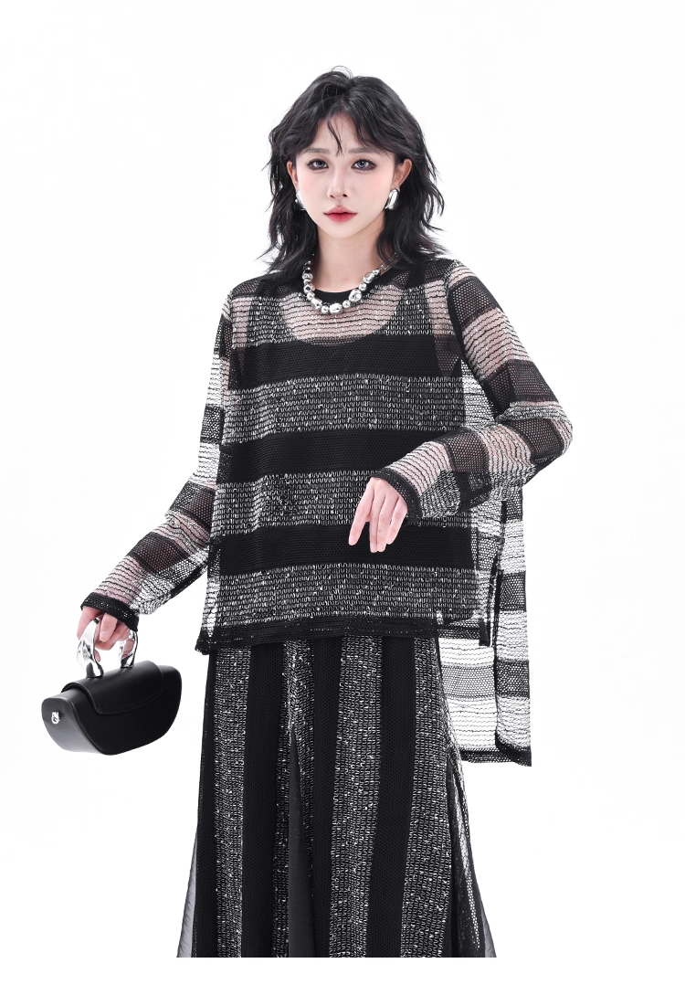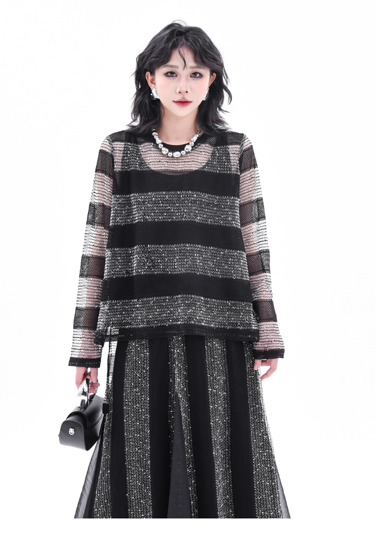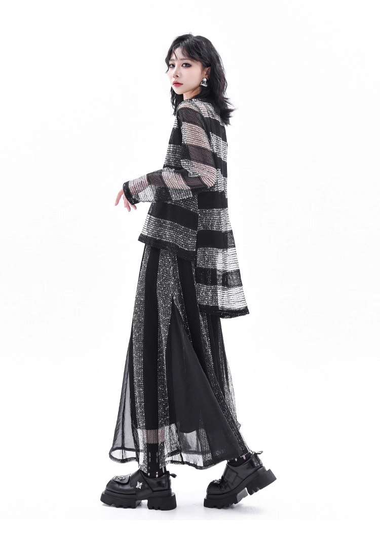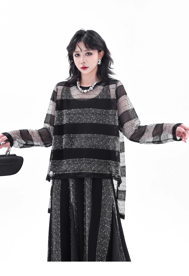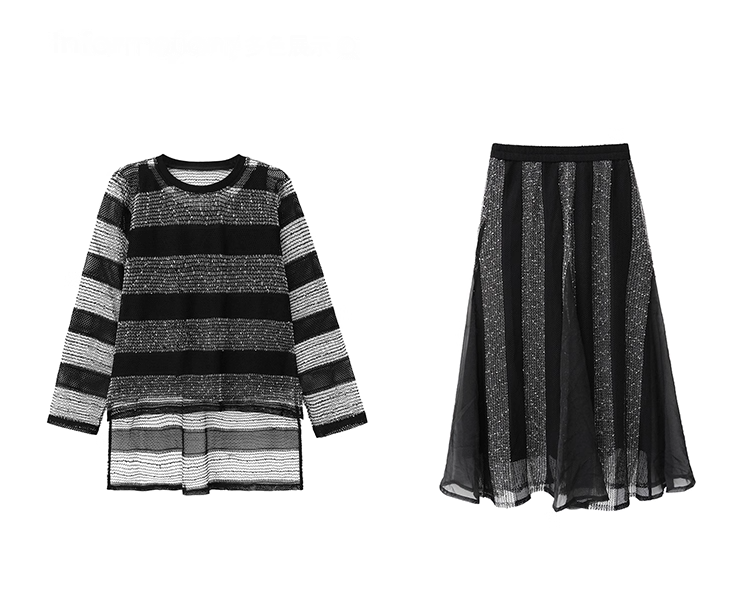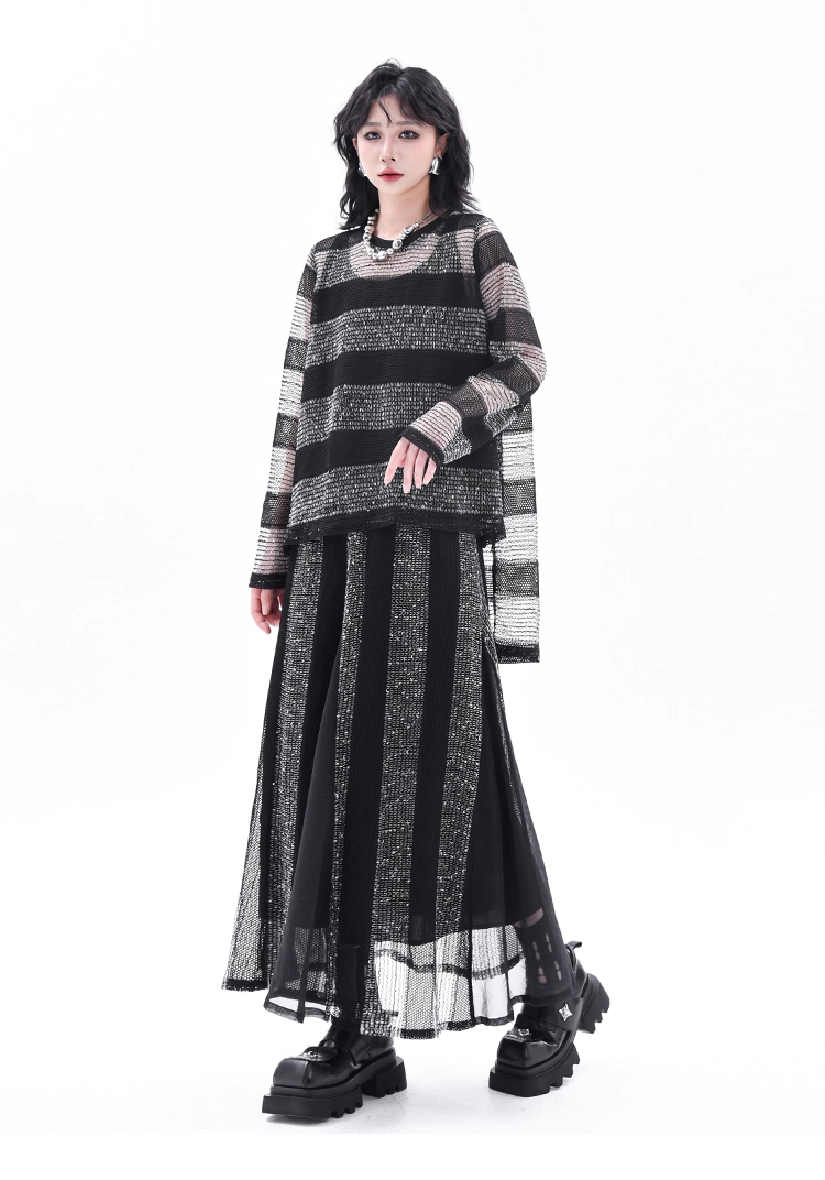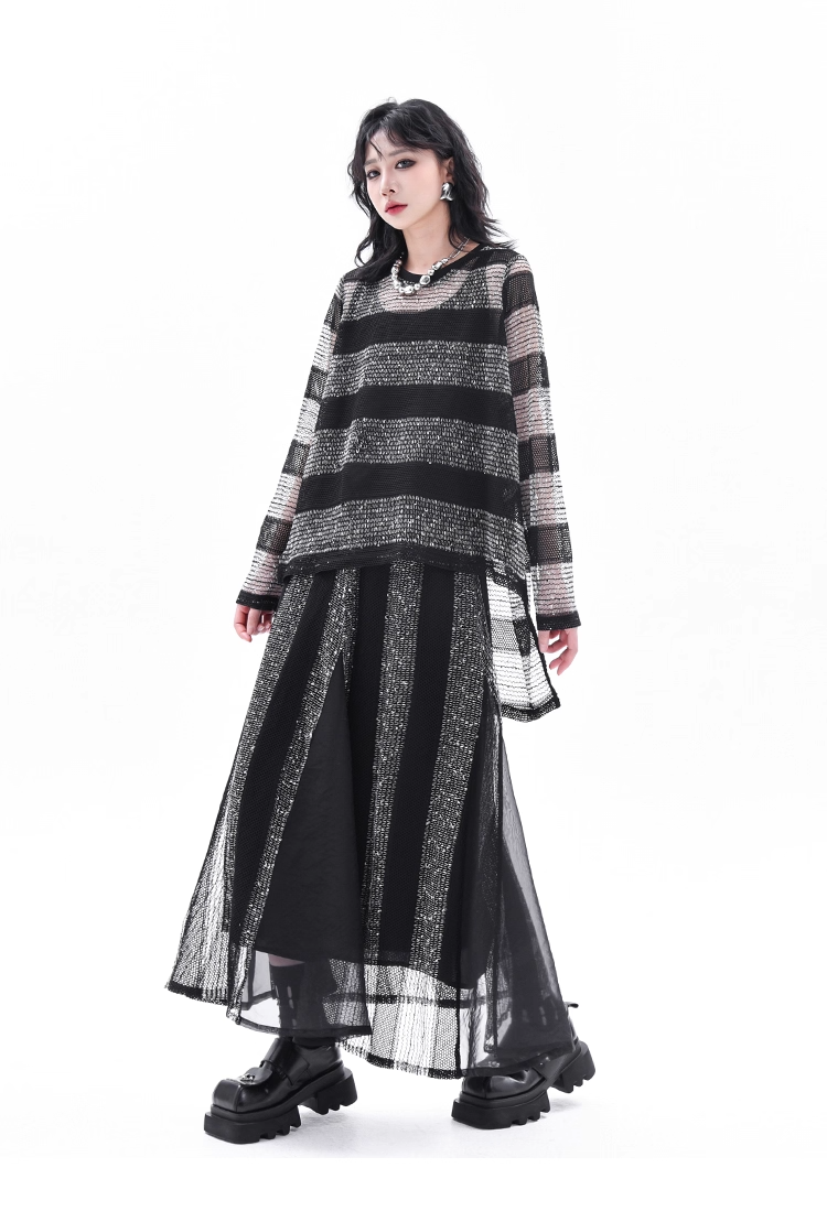Asymmetrical Long Sleeve Top & Elastic Waist Skirt X3361