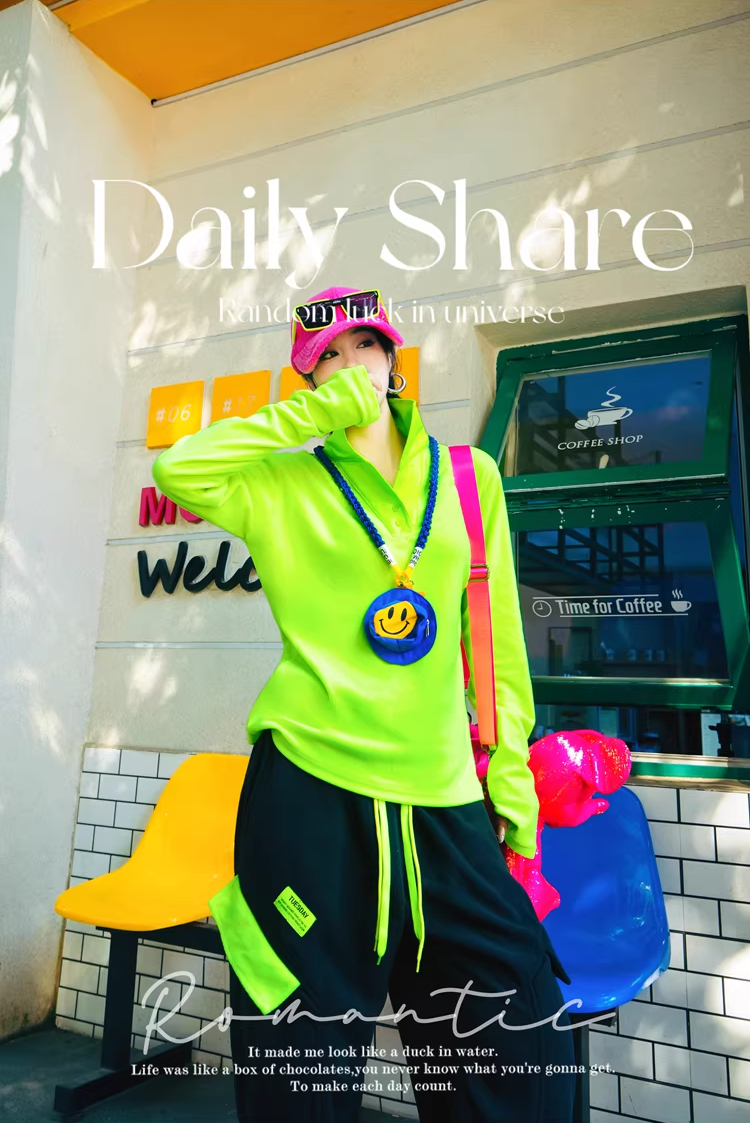 A polo top with a PU collar design and eye-catching, vibrant neon colors.