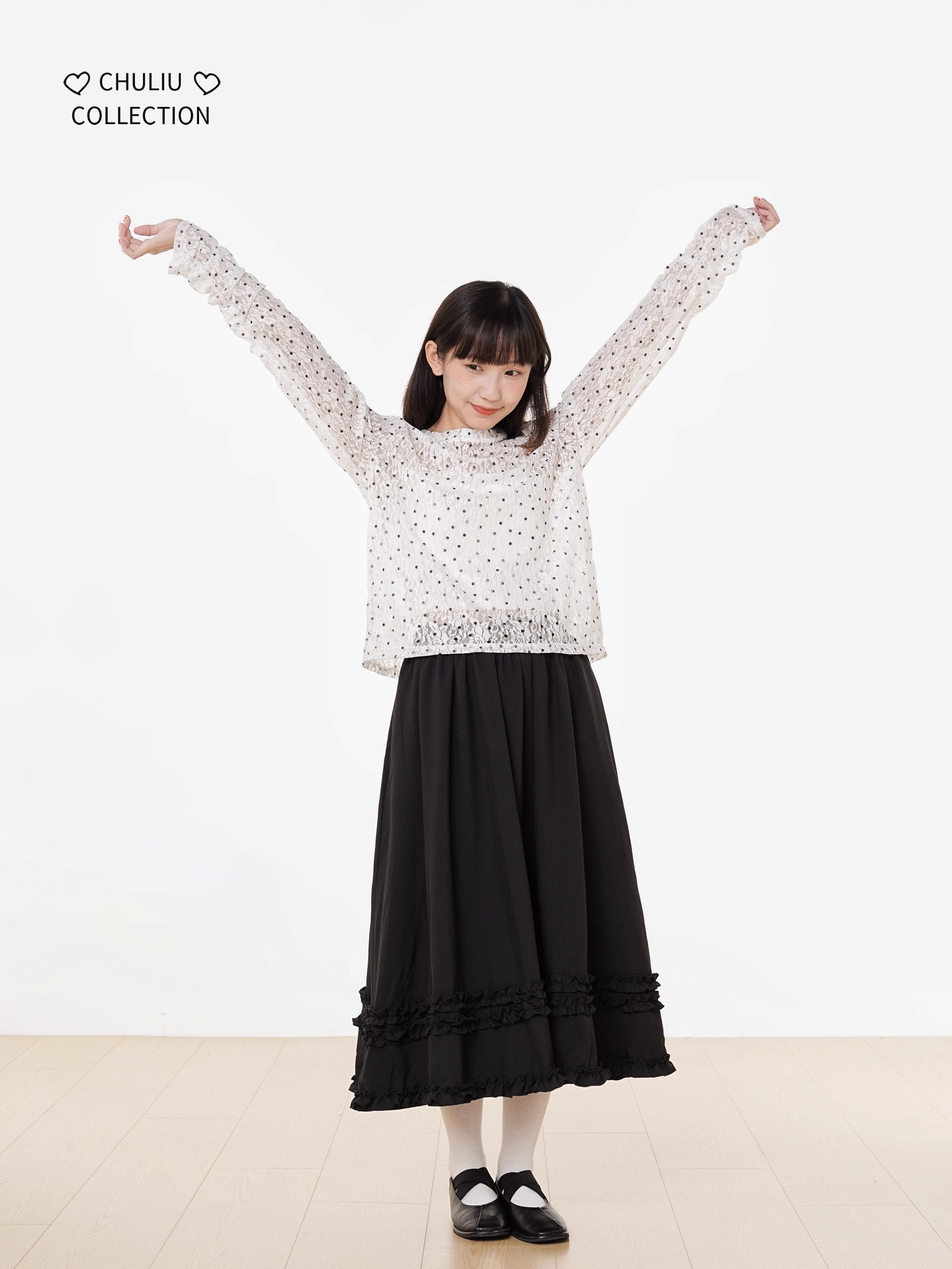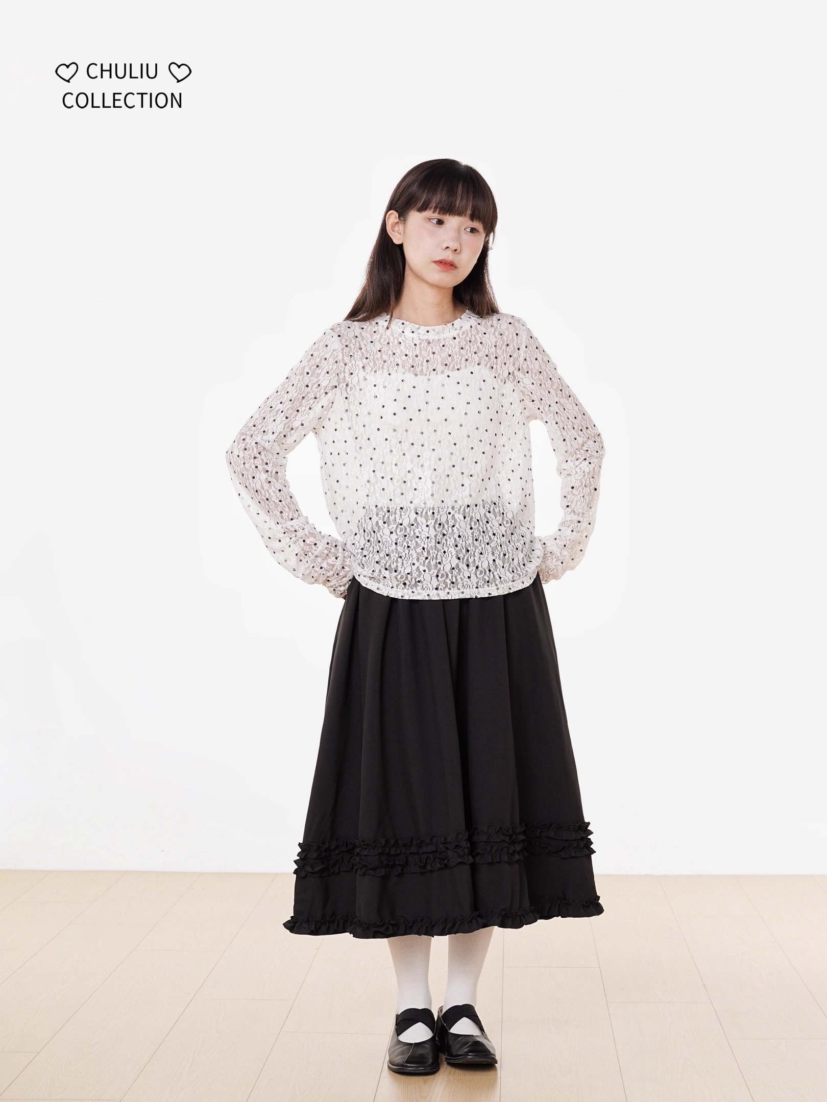 Retro Polka Dot Lace Stretch Loose Top X3398