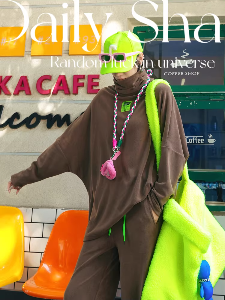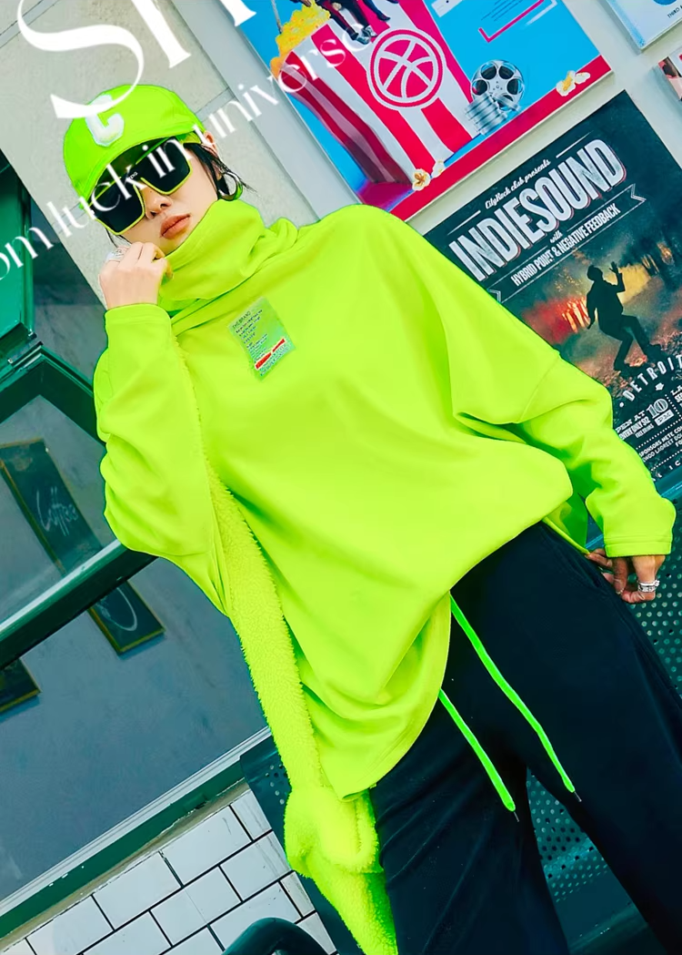 Color Batwing High-Neck Fleece Top X3511