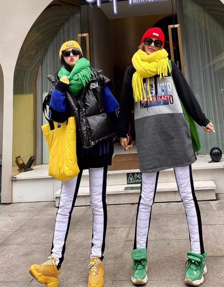 細身シルエットながら伸縮性があり、脚をすっきり見せるバランス設計。