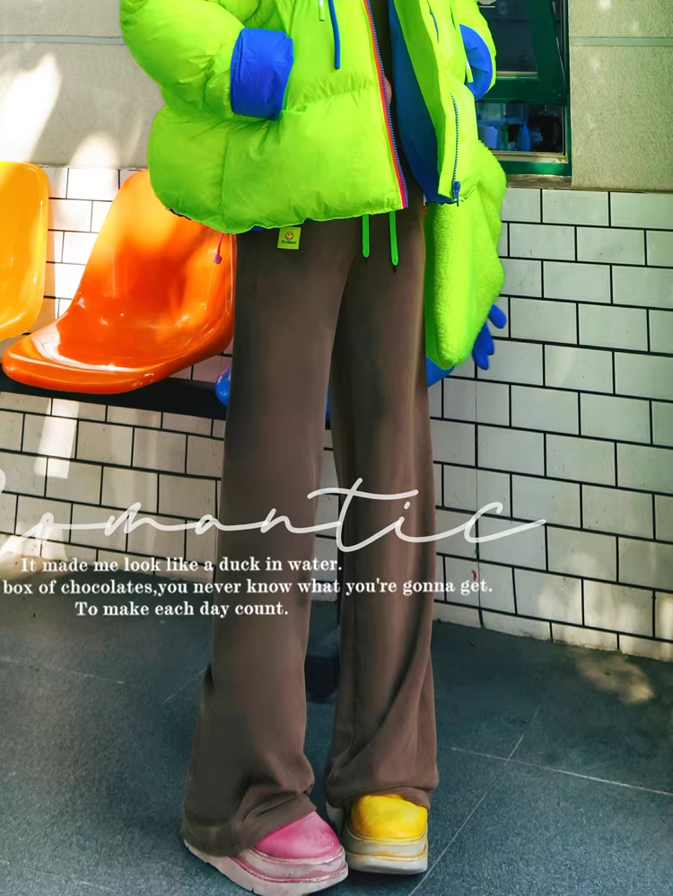 Color Straight Fleece-Lined Letter Patch Sweatpants X3510