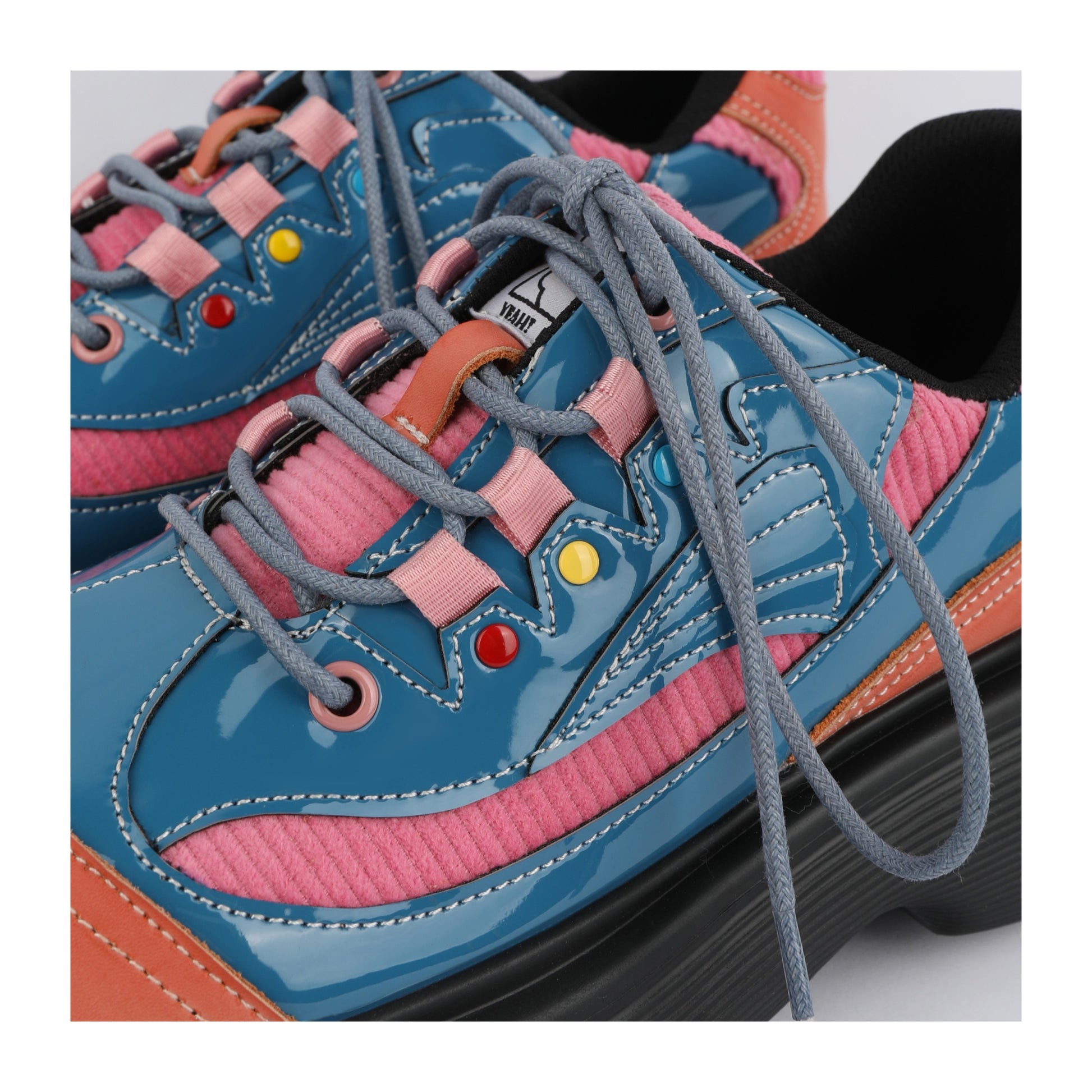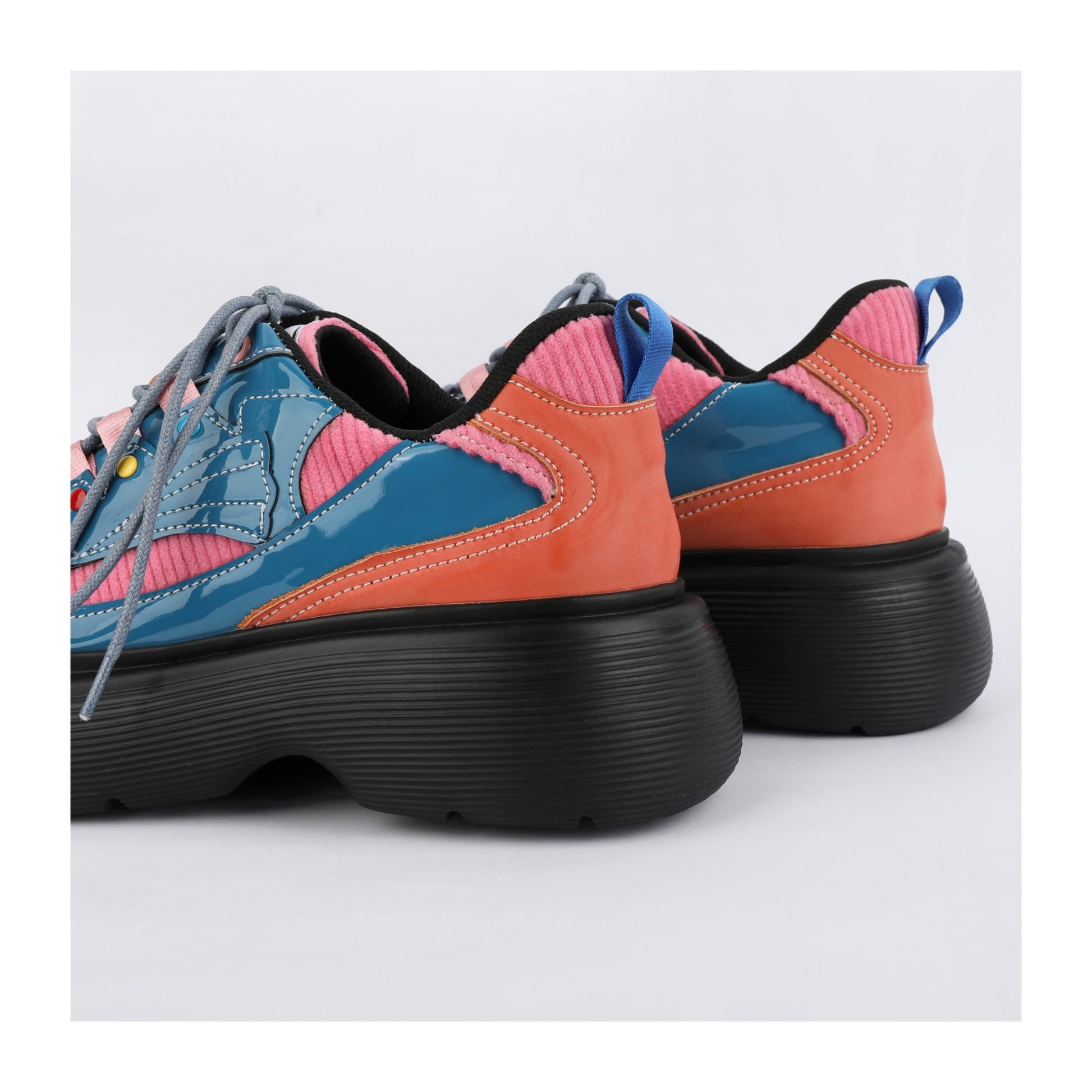 ・ブルー×ピンク×オレンジの配色に、グレーのシューレースを合わせた甘辛ミックスなデザイン。
