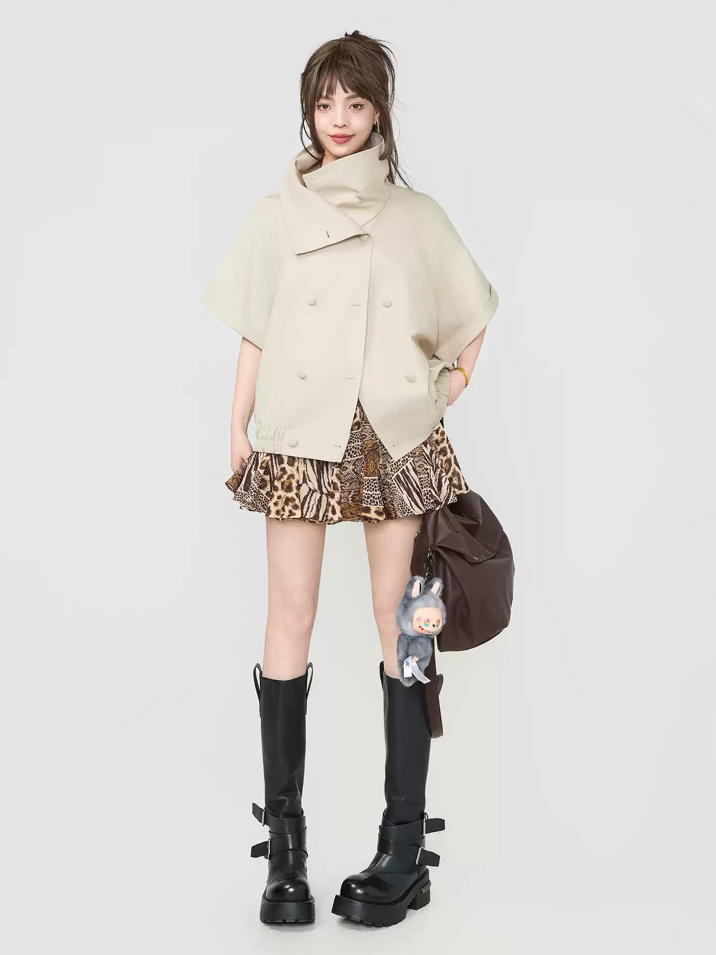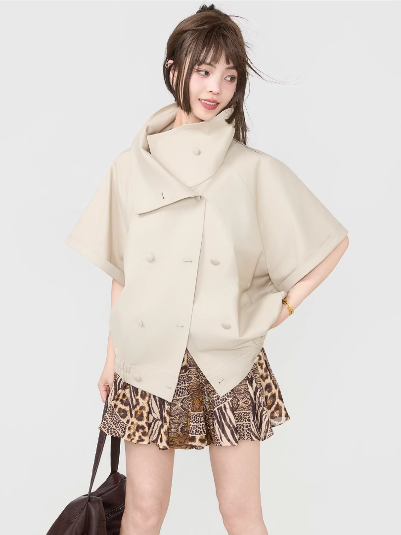 Double-Breasted Wide Silhouette Short-Sleeve Top X3537