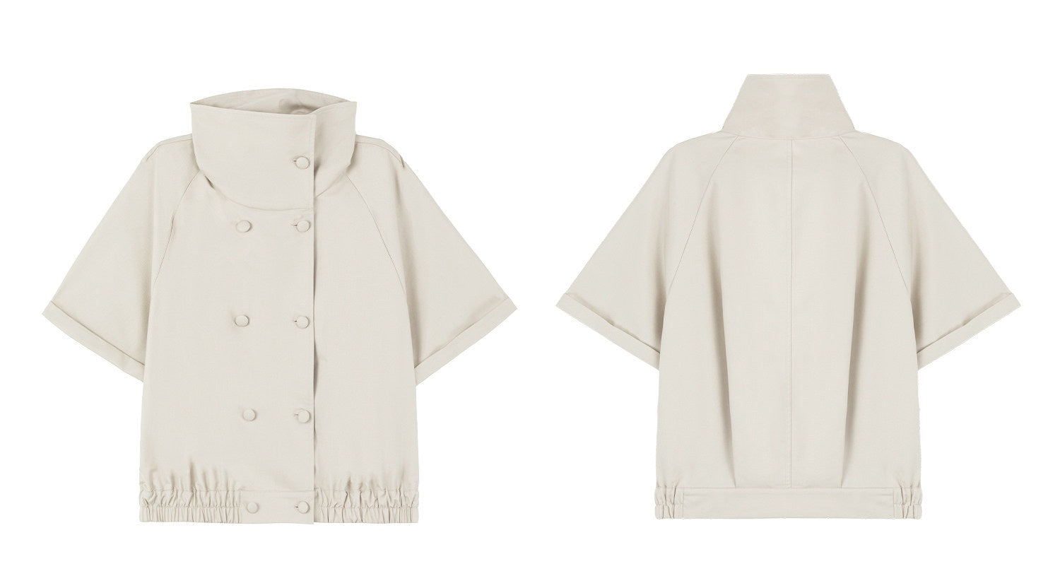 ダブルボタン仕様とラグランスリーブデザインが、こなれたフェミニンな雰囲気を演出します。