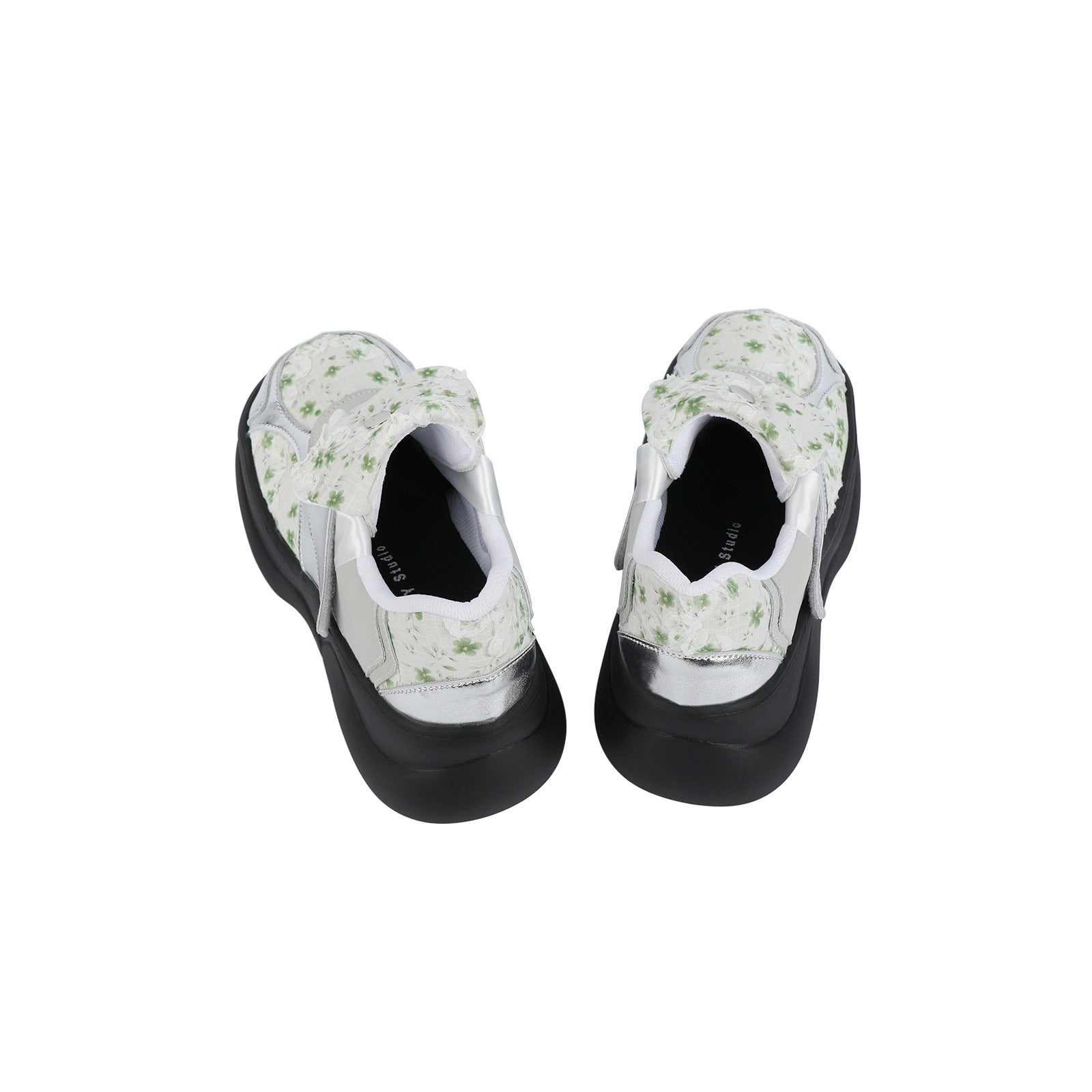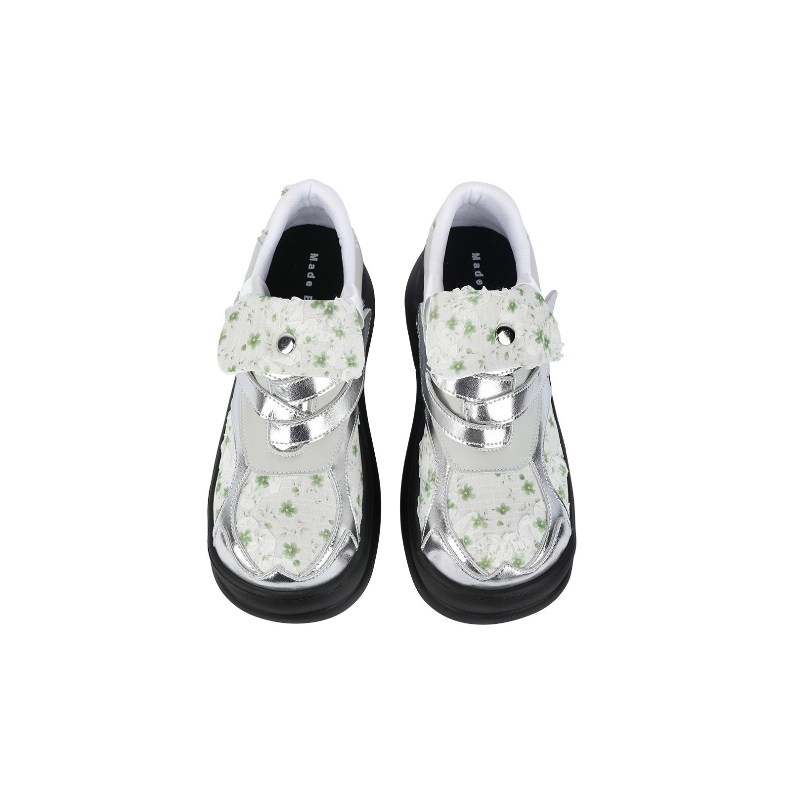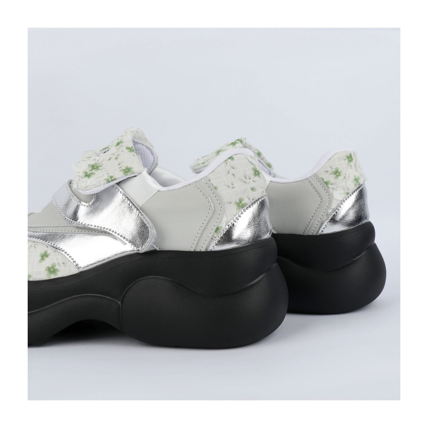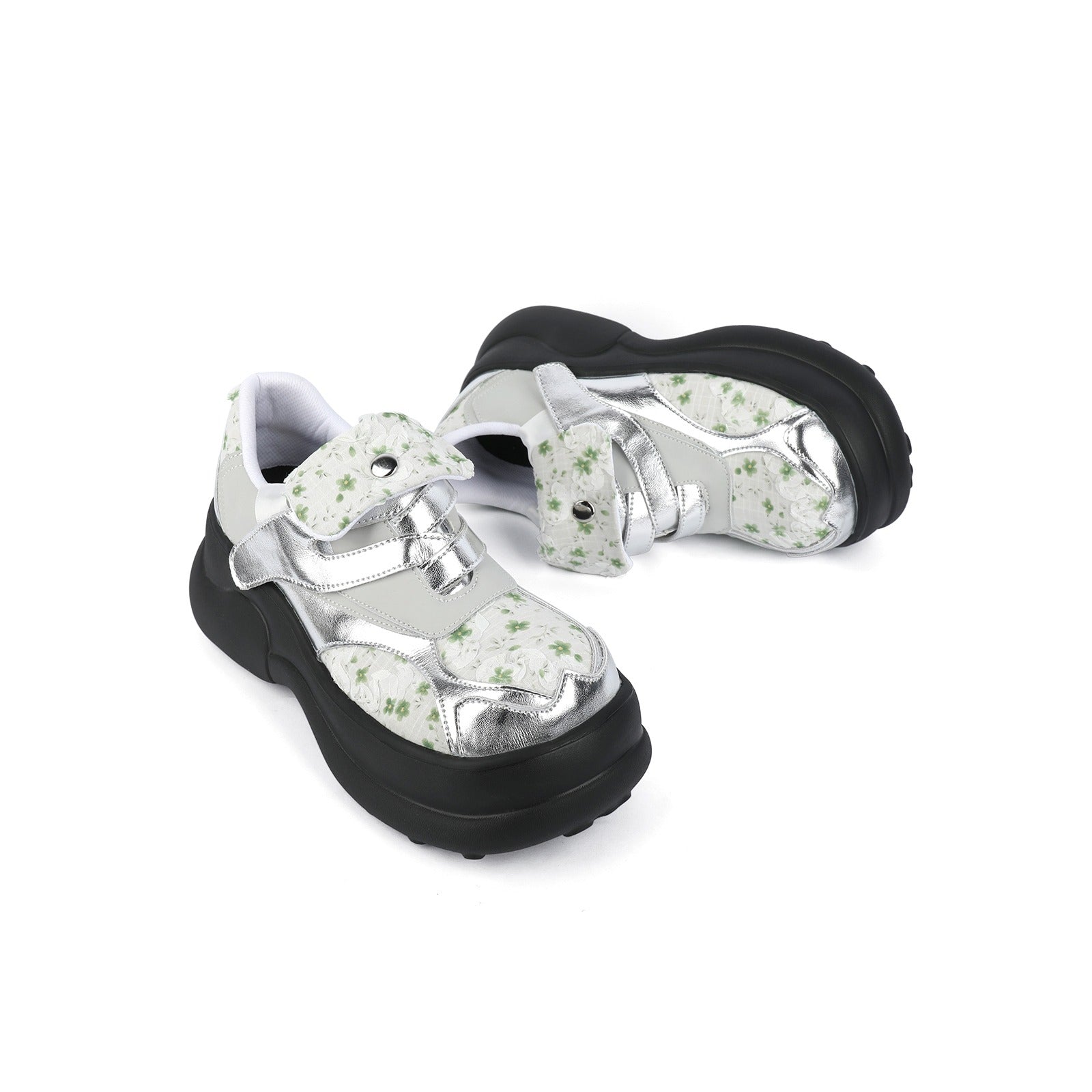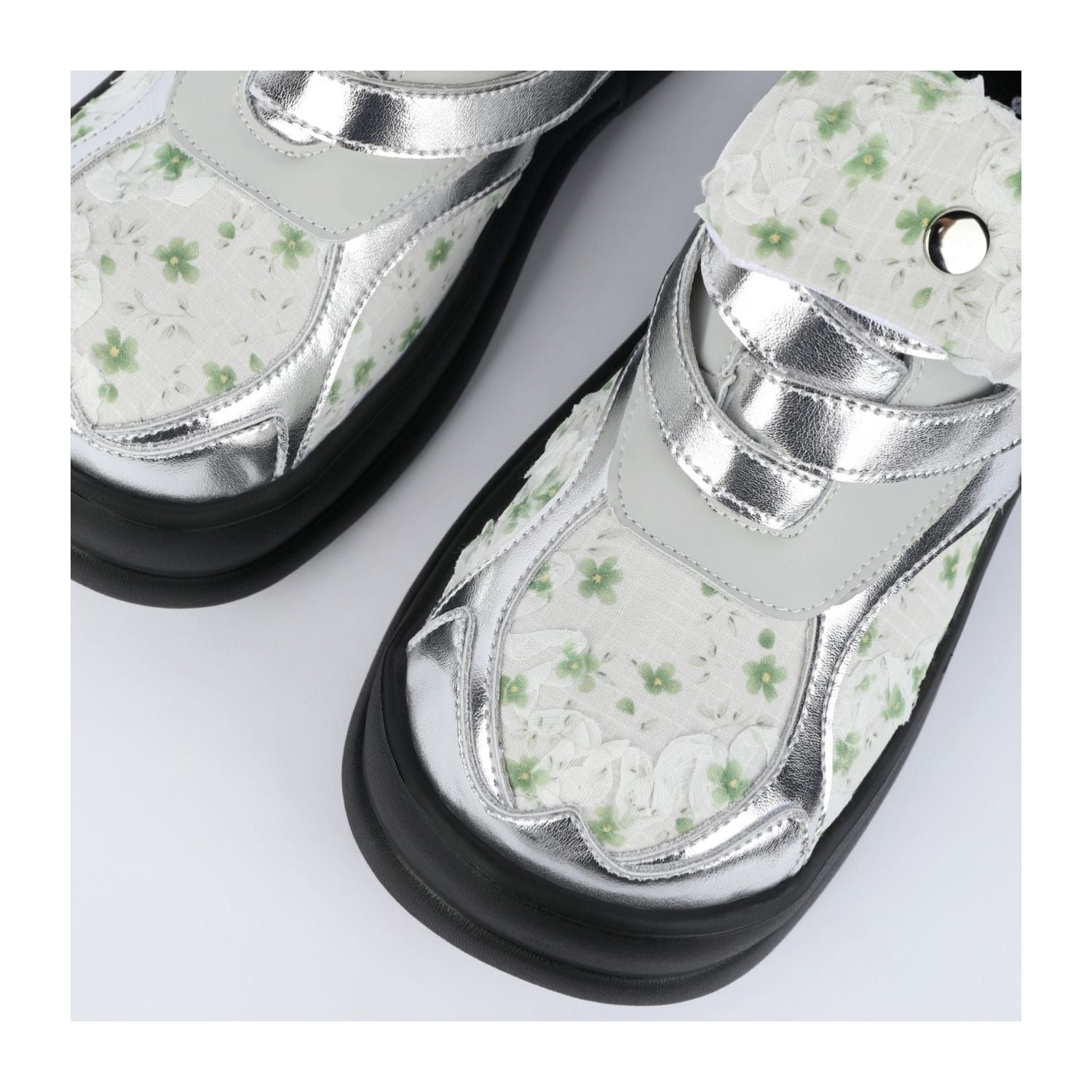 Floral Print & Silver Chunky Platform Velcro Shoes X3478