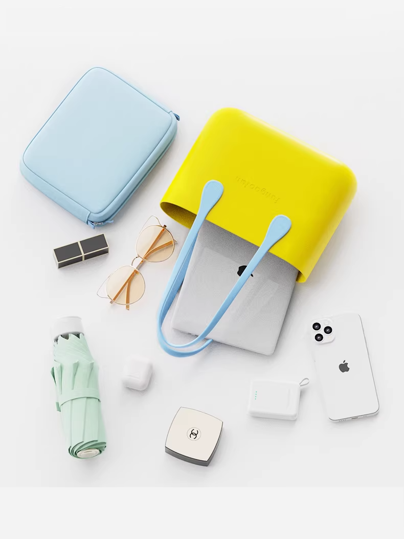 2026年新作の、軽量で耐久性に優れたEVA素材を使用したトートバッグです。 A4サイズやPCも余裕を持って収納できる大容量設計で、通勤・通学からデイリーユースまで幅広く活躍。付属のインナーポーチにより、バッグの中身をすっきりと整理できます。