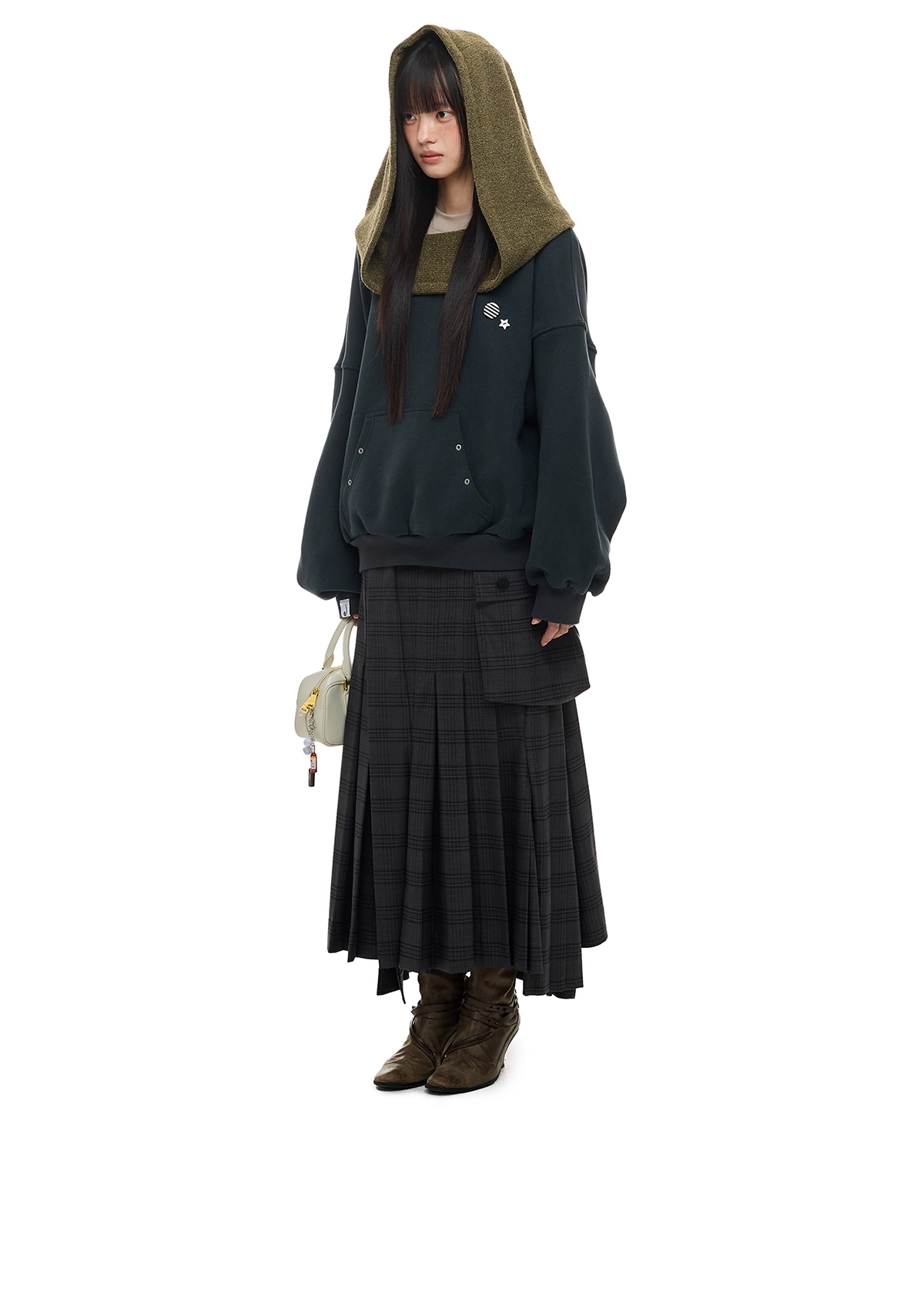 Layered-Look Off-Shoulder High-Neck Hoodie X3485