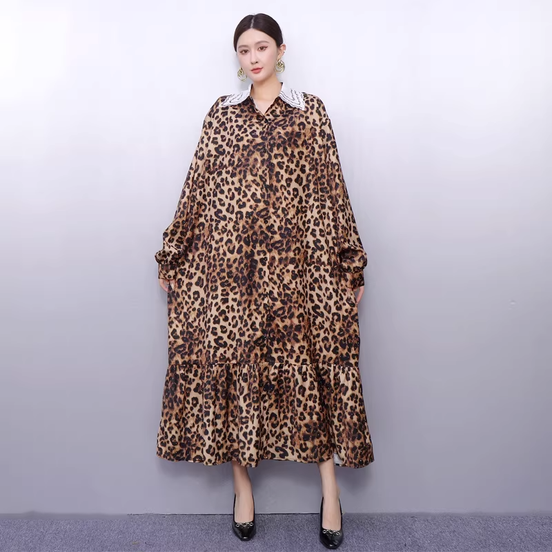 Leopard Print Long Shirt Dress X3520