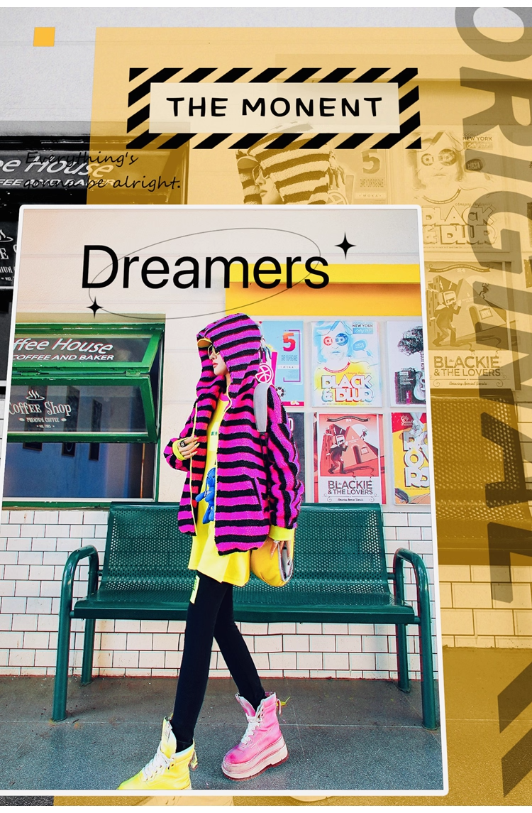 Striped Sherpa Fleece Colorblock Hoodie Jacket X3408