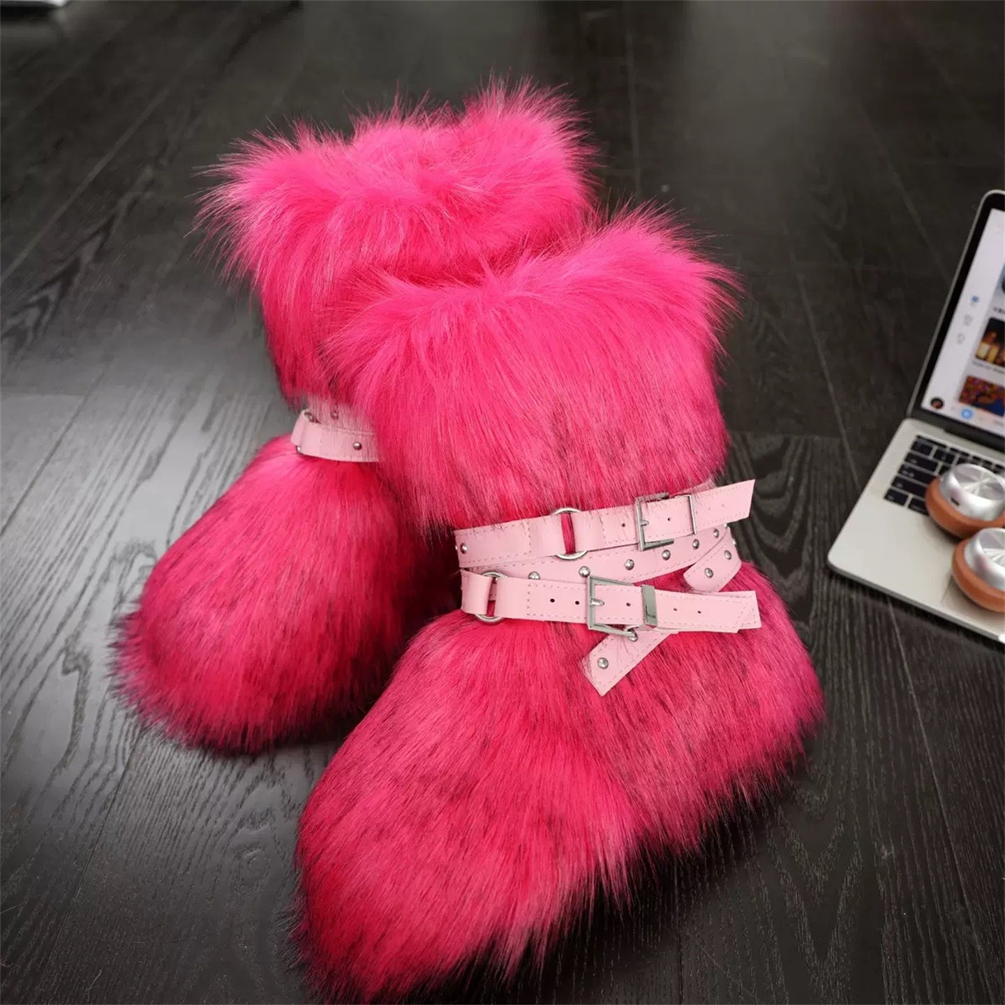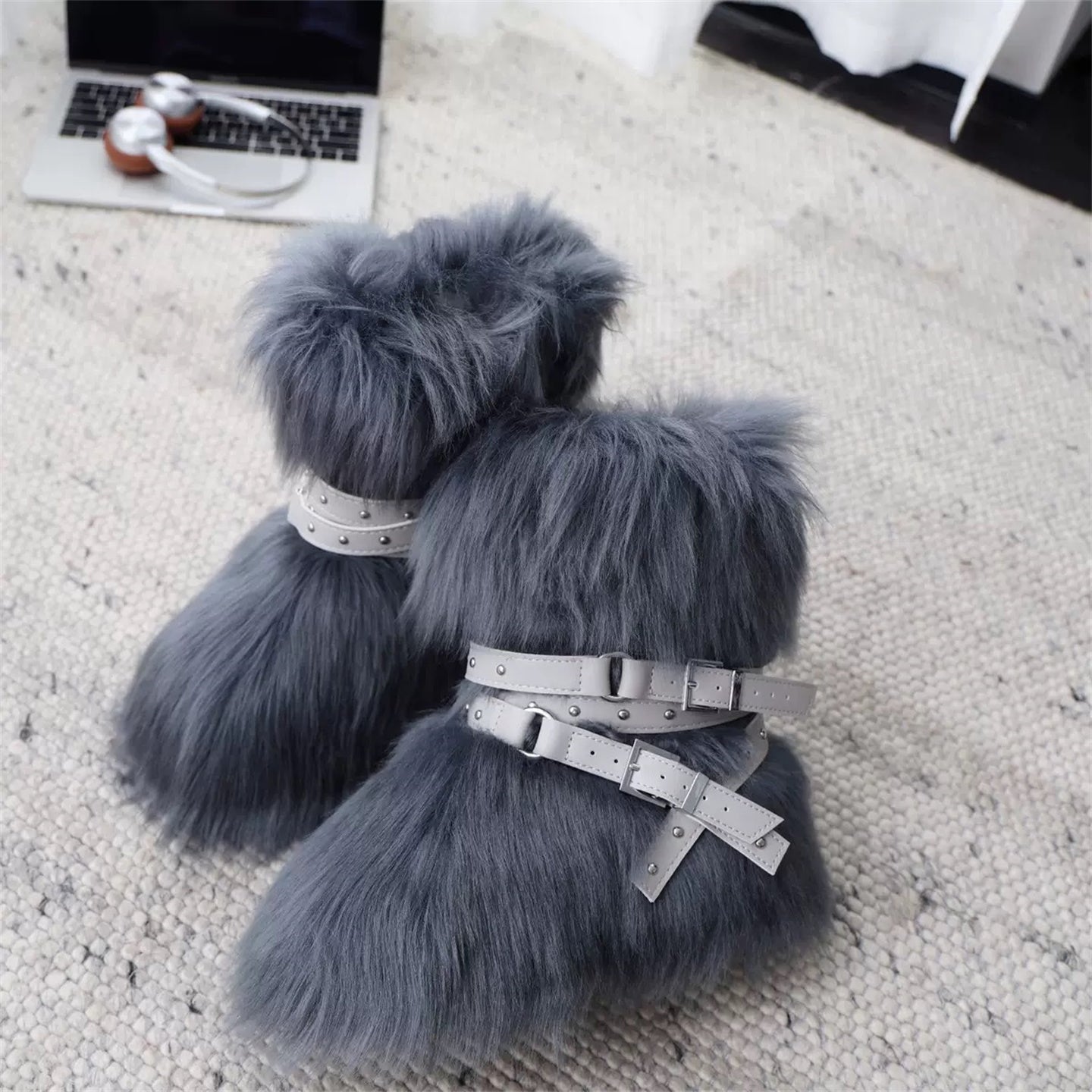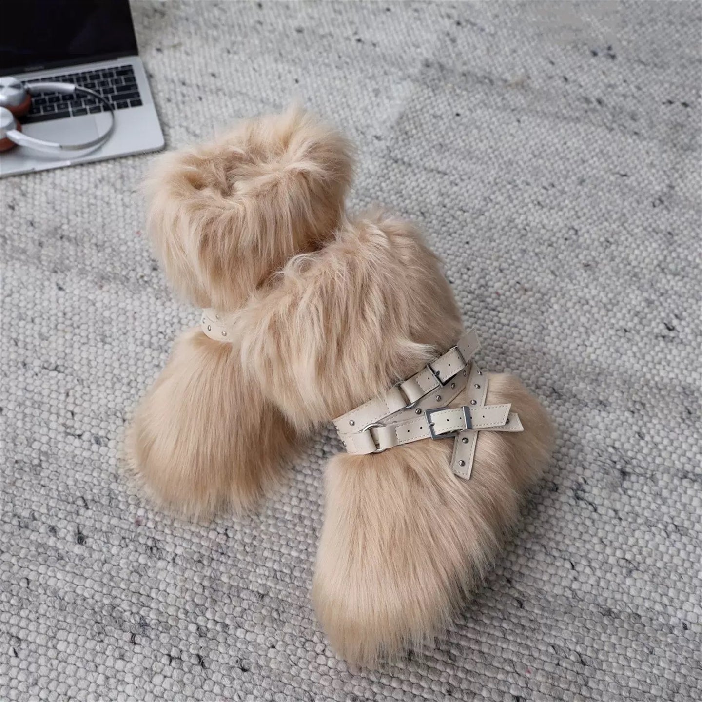 保温性に優れた人工ファーとスエード調素材の組み合わせ。軽量で暖かく、冬のカジュアルコーデにぴったり。滑りにくいラバーソールで安定感のある履き心地。