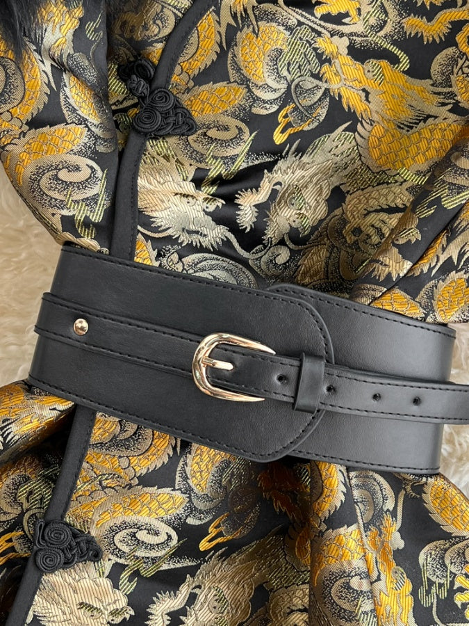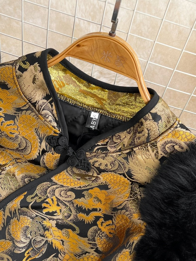 伝統的なチャイナスタイルの立ち襟とファー袖が特徴。