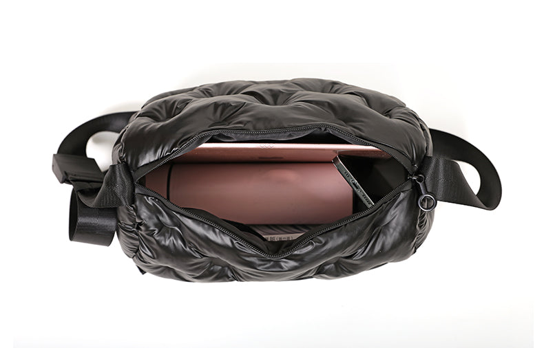 ふわっとした質感とシンプルなデザインが特徴のクロスボディバッグ。