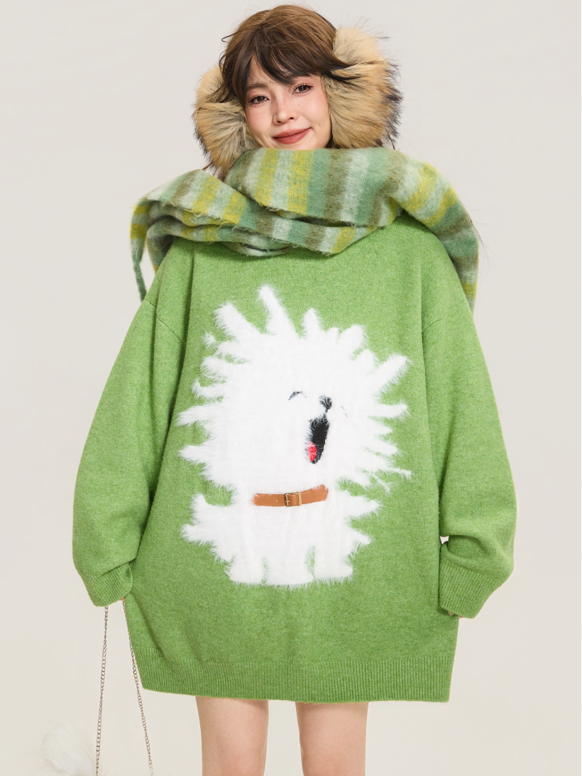 皇家藍色荷葉邊羊毛超大運動衫 X3407