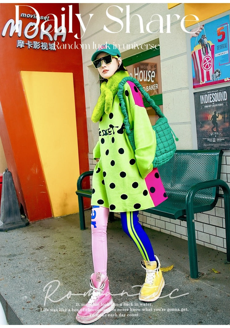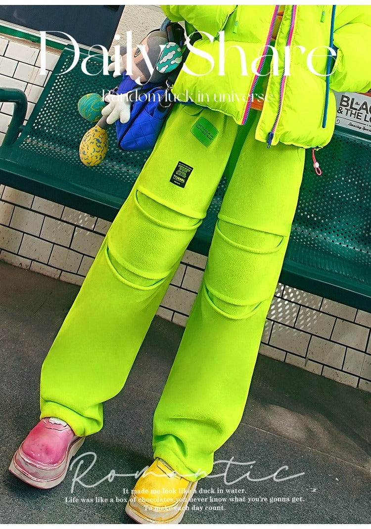 霓虹綠字母貼布羊毛緊身褲 X3412