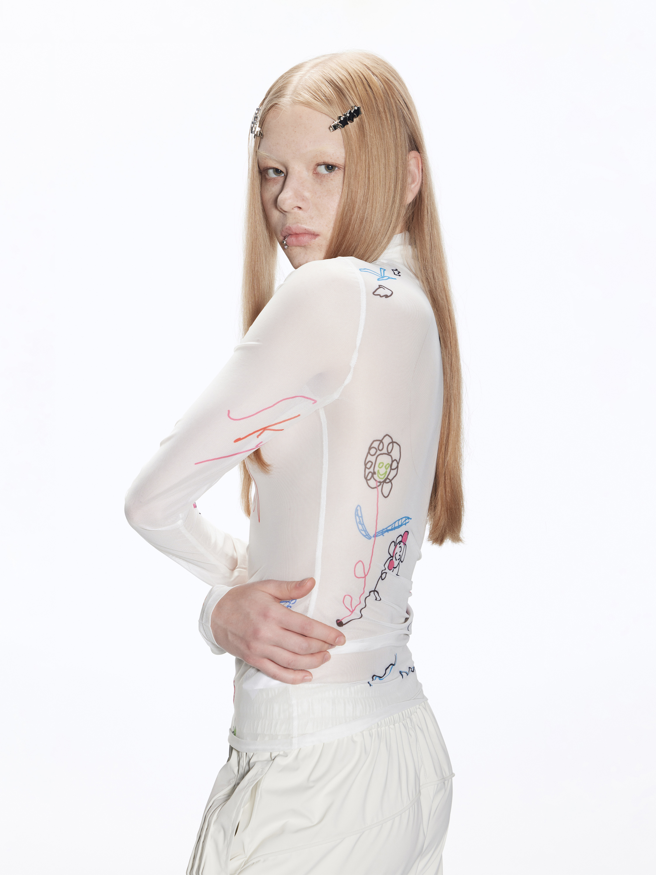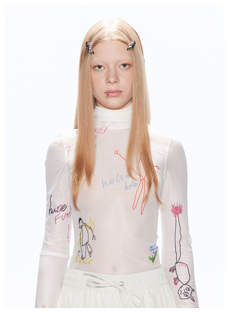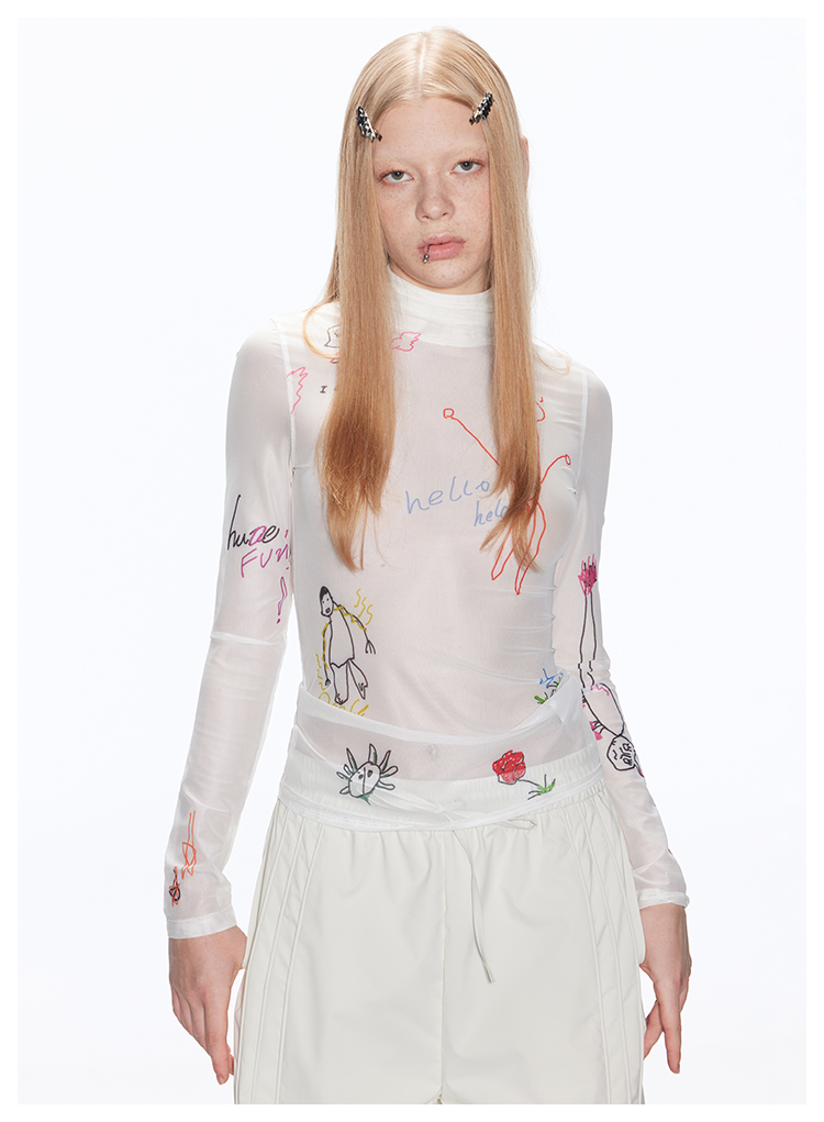 塗鴉印花薄網眼T卹 X3106