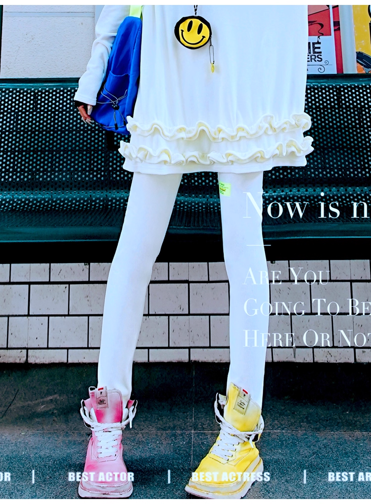 霓虹綠字母貼布羊毛緊身褲 X3412