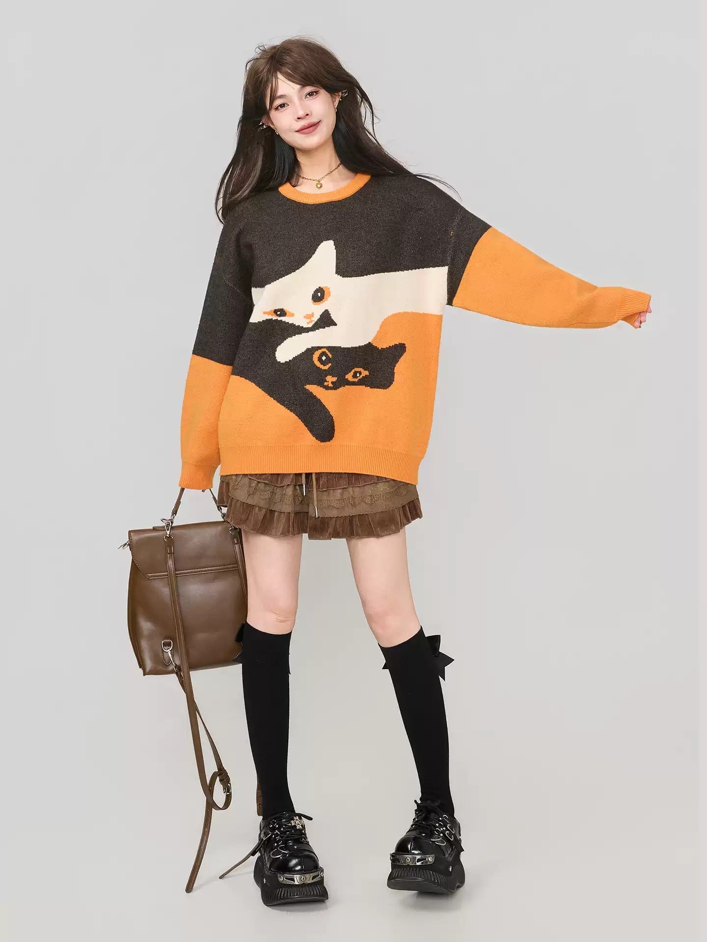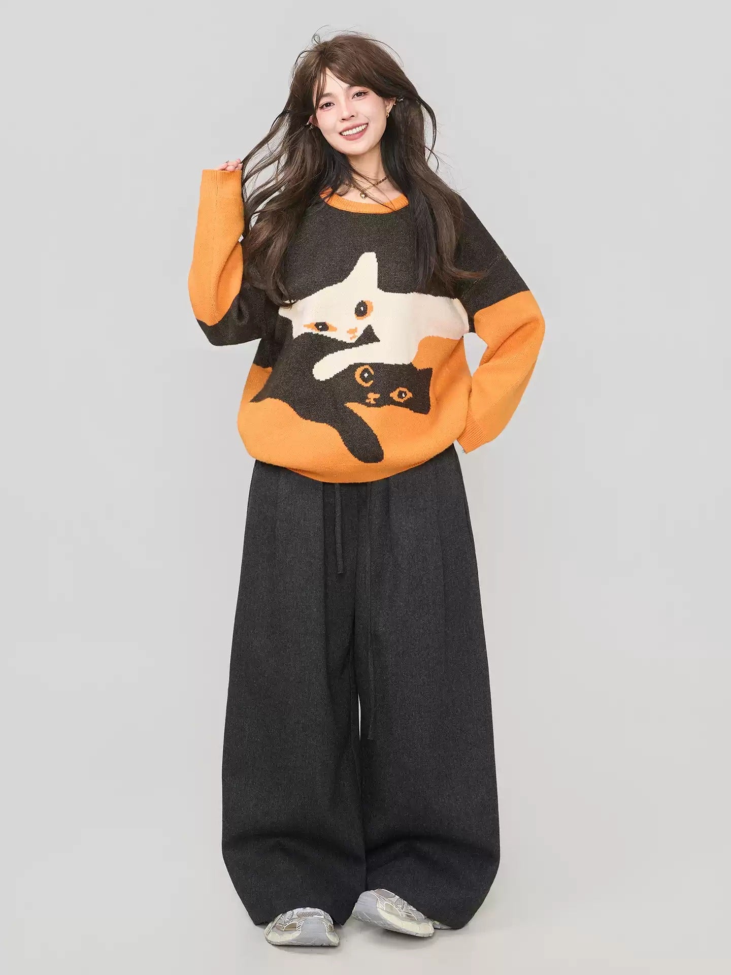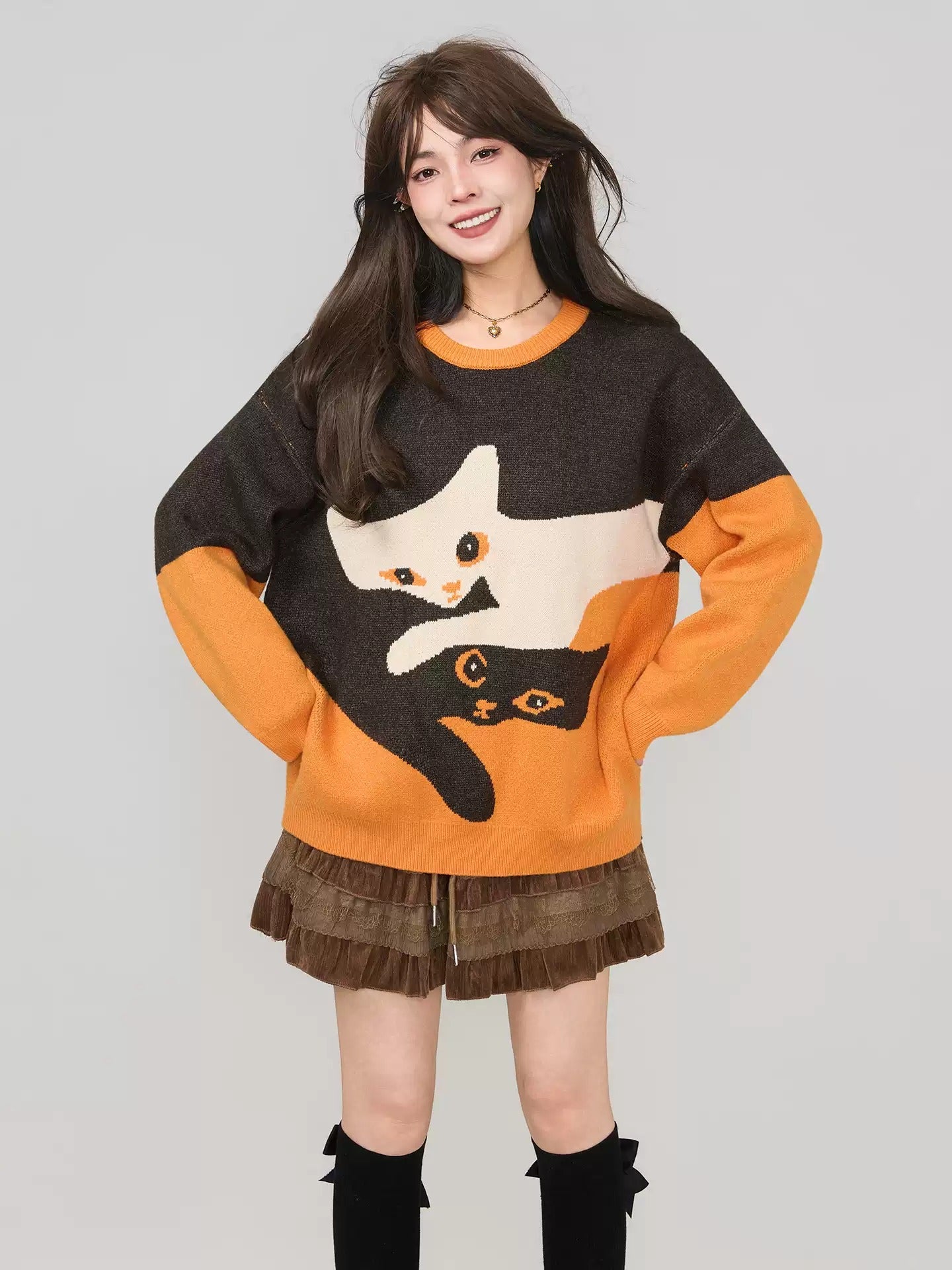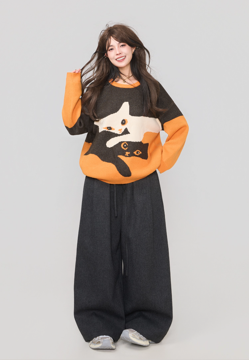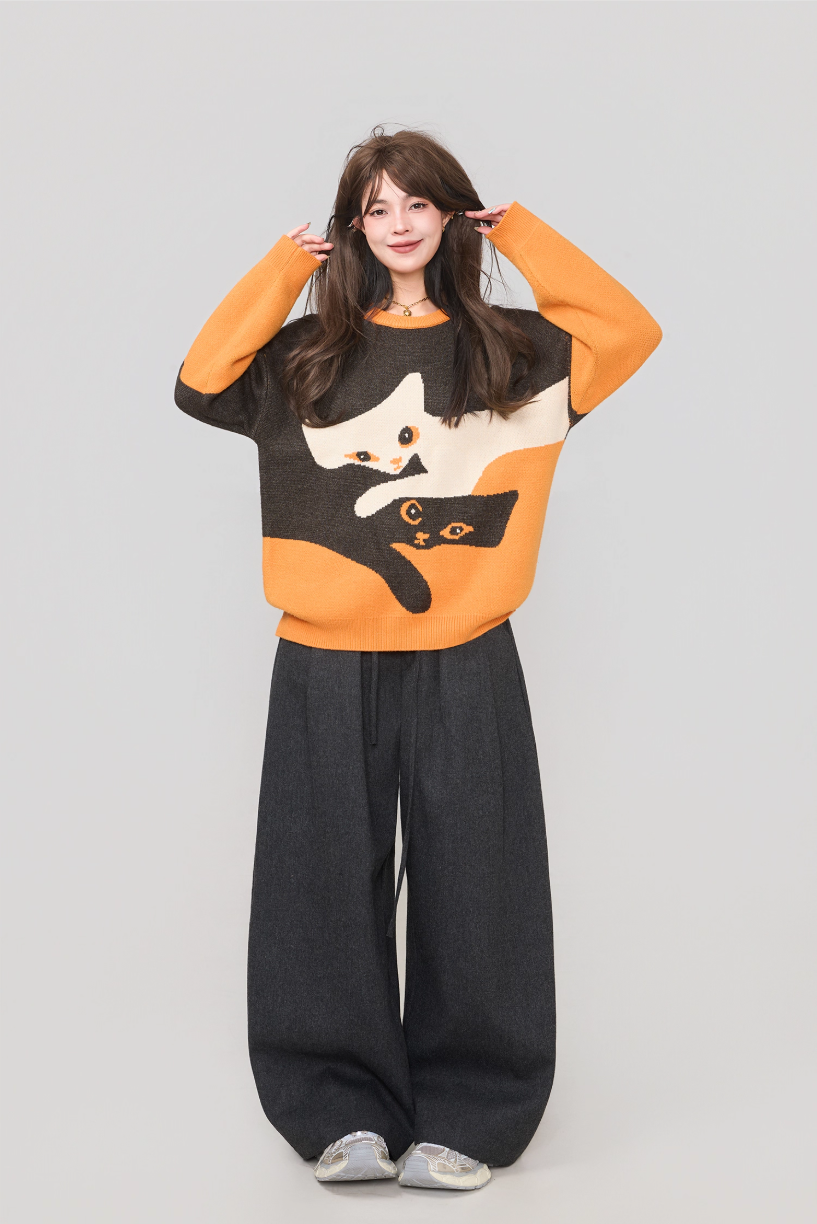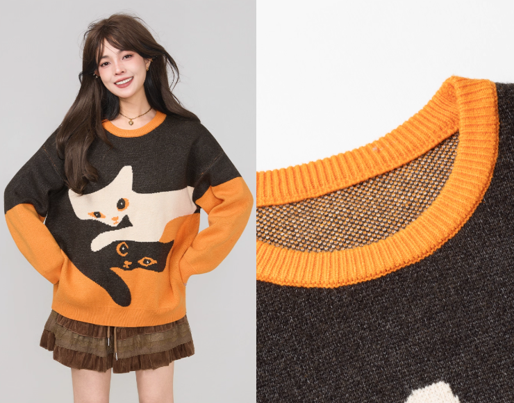 高級貓咪提花針織毛衣 X3451