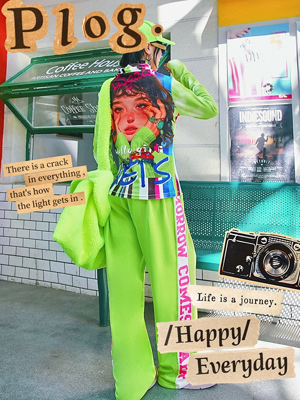 霓虹色字母貼片加厚背心 X3429